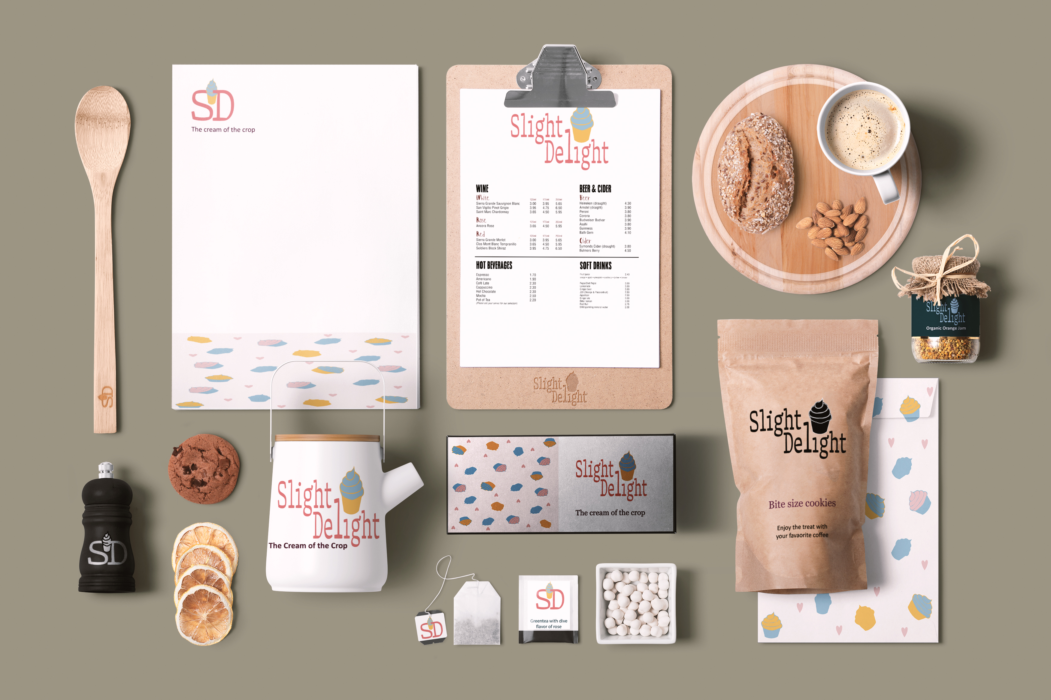 Slight Delight is a bakery specializing in baked goods. This project focused on creating a playful brand identity and guidelines for small businesses, which was challenging yet rewarding. I aimed to design a fun logo with bright colors to reflect the bakery’s joyful concept. The logo, featuring a cupcake in cool and warm colors, successfully embodies the brand’s playful spirit, appealing to both young customers and sweet enthusiasts alike.